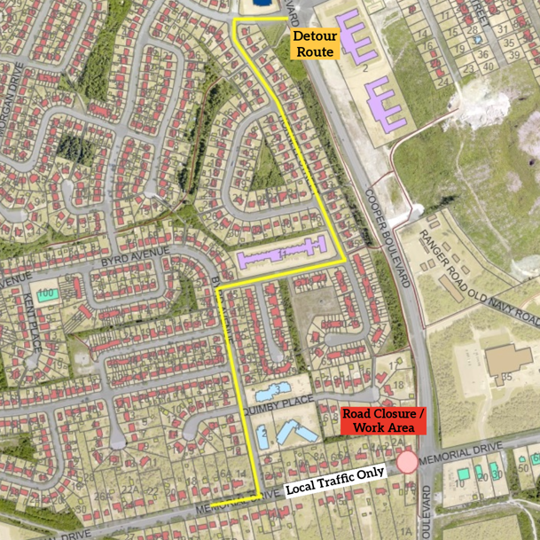 Please be advised that on Monday, February 23, 2026, a road closure and detour will be in effect in the Memorial Drive and Cooper Boulevard area.